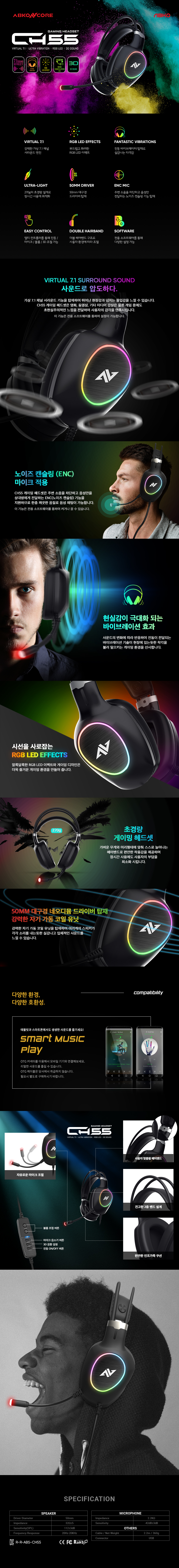 »óǰ¸í [¾ÛÄÚ¾ØÄÚ¾î] ABKONCORE CH55 Virtual 7.1 LED °ÔÀÌ¹Ö Çìµå¼Â