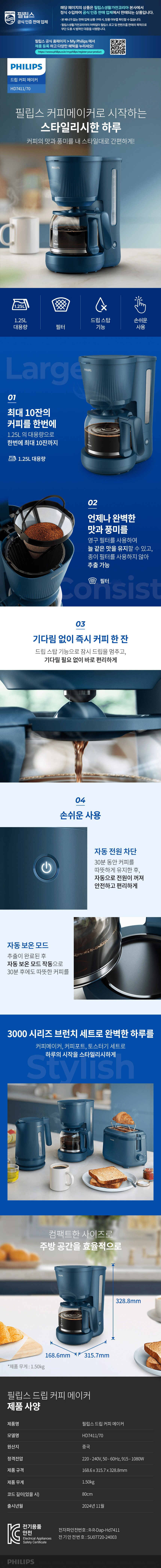 »óǰ¸í [Çʸ³½º] 3000½Ã¸®Áî µå¸³ Ä¿ÇÇ ¸ÞÀÌÄ¿ ³×À̺ñ HD7411/70