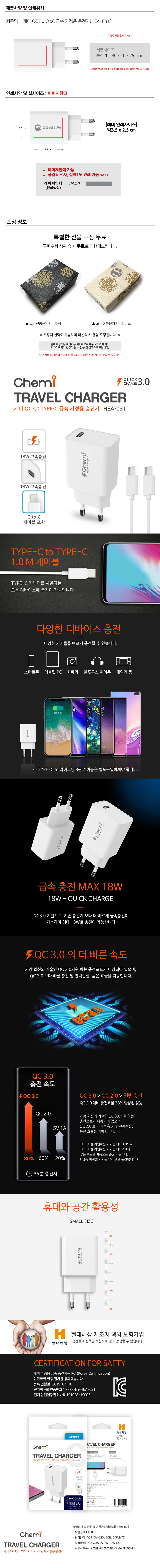 »óǰ¸í [ÄɹÌ] QC3.0 C to C ±Þ¼Ó °¡Á¤¿ë ÃæÀü±â HEA-031 (ÄÉÀ̺íÆ÷ÇÔ)