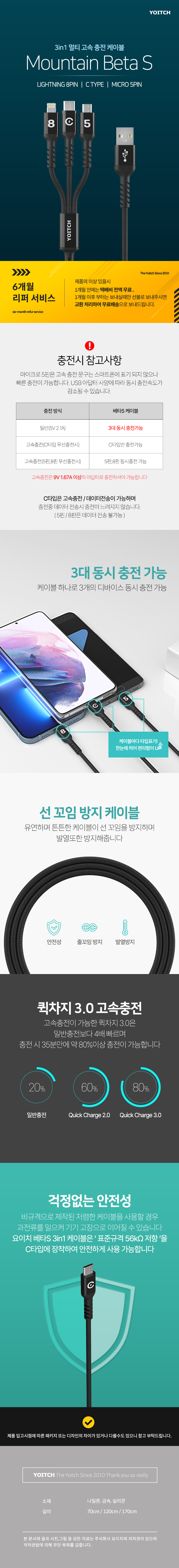 »óǰ¸í [¿äÀÌÄ¡] ¸¶¿îƾ º£Å¸ S 3in1 °í¼Ó ¸ÖƼ ÃæÀü ÄÉÀ̺í (70cm/120cm/170cm) (µ¥ÀÌÅÍ/ÃæÀü °â¿ë) 1P