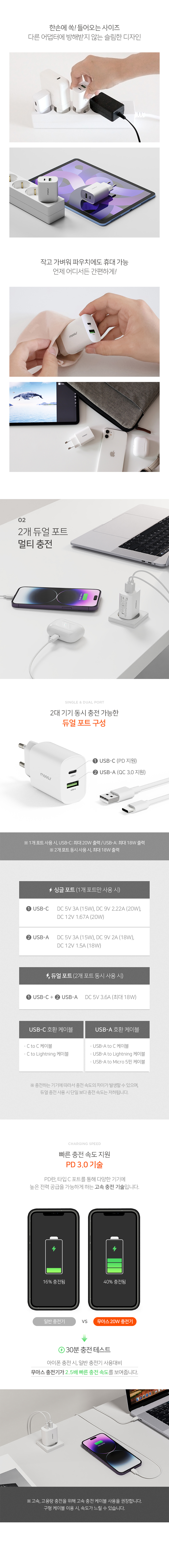 »óǰ¸í [¹«¾Æ½º] 2Æ÷Æ® 20W PD °í¼Ó ¸ÖƼ ÃæÀü±â