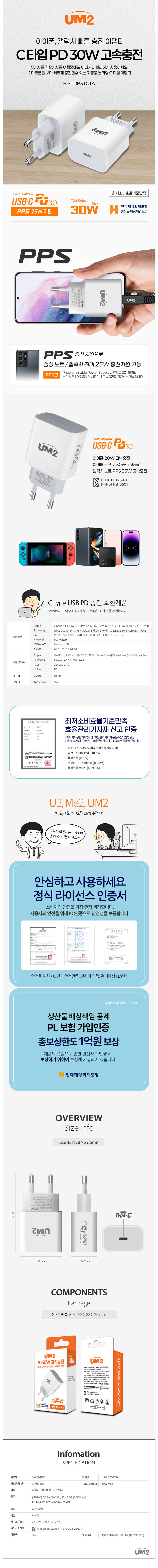 »óǰ¸í [À¯¿¥Åõ] UM2 ÃæÀü±â PD30W (HJ-PDB31C1A) 1P