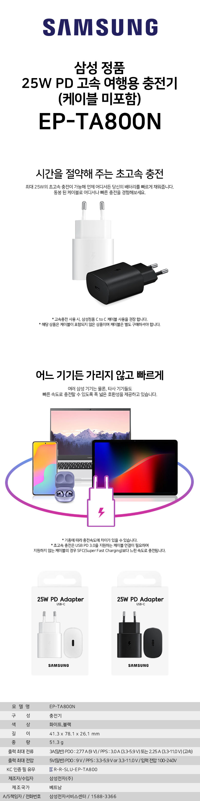[»ï¼º] CtoC CŸÀÔ 25W °í¼Ó PD ÃæÀü±â EP-TA800N 1P (ÄÉÀ̺í¹ÌÆ÷ÇÔ)