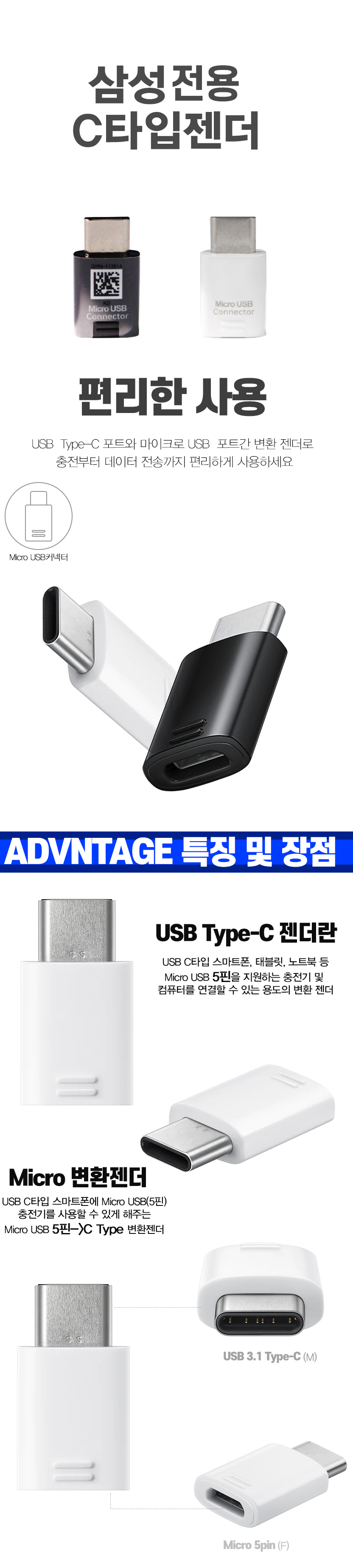 ¸¶ÀÌÅ©·Î 5PIN to C-TYPE º¯È¯ Á¨´õ USB3.1 1P