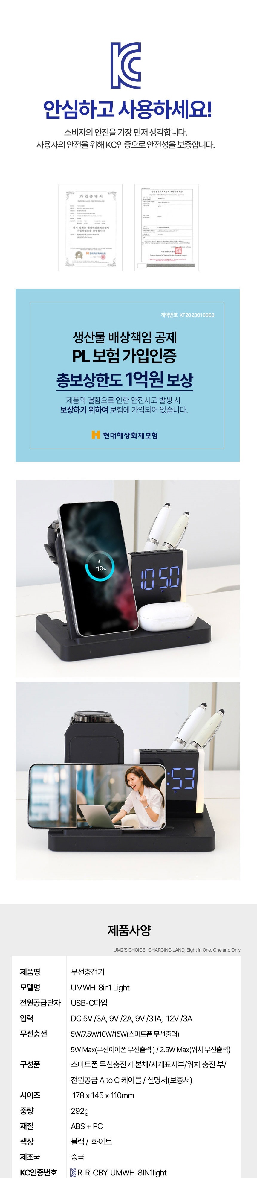 [À¯¿¥Åõ] UM2 ¿ÃÀοø ¹«¼±ÃæÀü±â 3in1+¾Ë¶÷½Ã°è (UMWH-4in1SAAP)