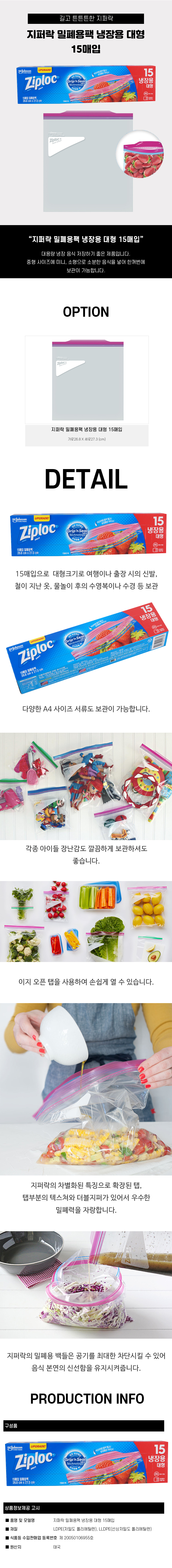 »óǰ¸í [ÁöÆÛ¶ô] Ziploc ¹ÐÆó¿ë¹é ÁöÆÛ¹é ³ÃÀå¿ë ´ëÇü 15¸ÅÀÔ (27*28cm) 1P