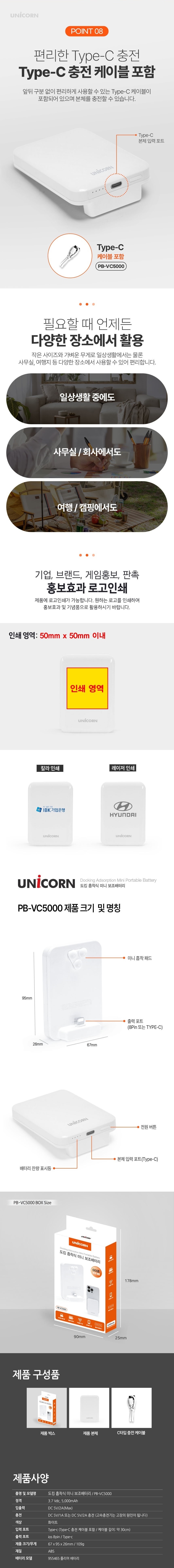 [À¯´ÏÄÜ] 5000mAh º¸Á¶¹èÅ͸® Ãʽ½¸² Ãʰ淮 ÈíÂø½Ä 3´ë µ¿½ÃÃæÀü CŸÀÔ/8ÇÉ ÀÜ·® LEDÇ¥½Ã PB-VC50