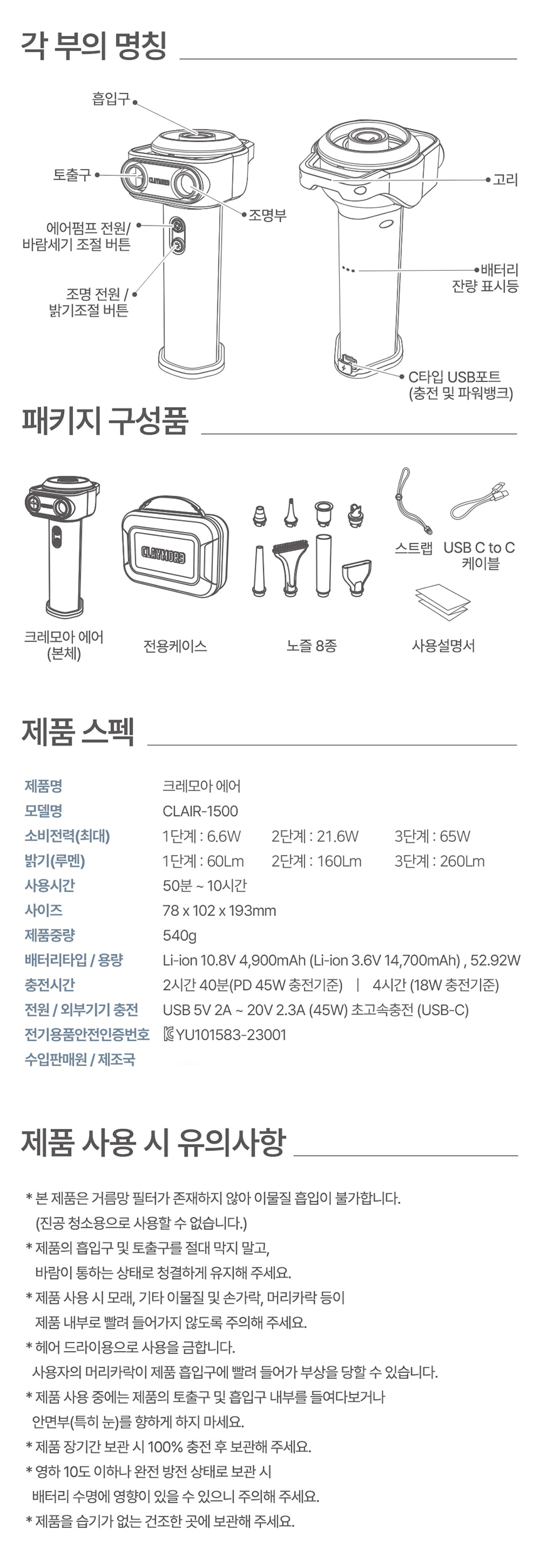 »óǰ¸í [Å©·¹¸ð¾Æ] ¿¡¾î ¿¡¾îÆßÇÁ CLAIR-1500 1P