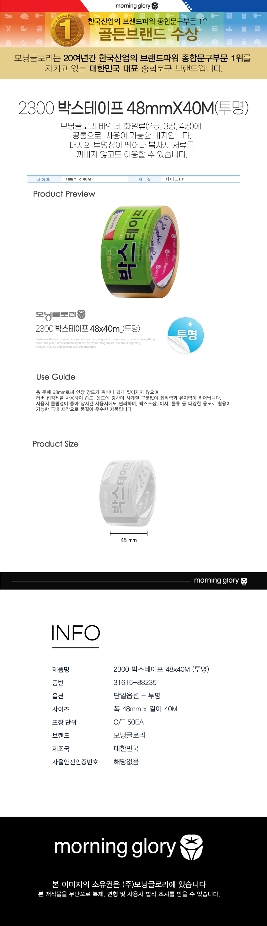 »óǰ¸í [¸ð´×±Û·Î¸®] 2500 ¹Ú½ºÅ×ÀÌÇÁ 48mmX40m(Åõ¸í) 31615-88235 1P