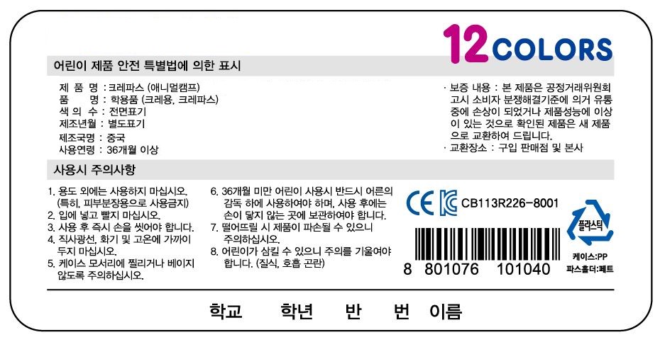 [µ¿¾Æ] ³ë¶ûº´¾Æ¸® Å©·¹¿ë 12»ö (±¹»ê)