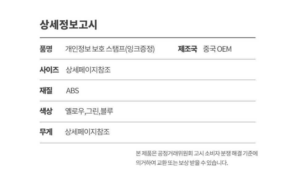 »óǰ¸í °³ÀÎÁ¤º¸ º¸È£ ½ºÅÆÇÁ (À×Å©ÁõÁ¤) 1P