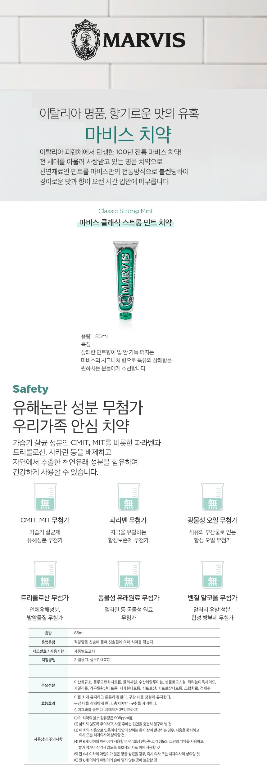 [¸¶ºñ½º] (Á¤Ç°) Ä¡¾à 85ml 7Á¾ Åà 1P