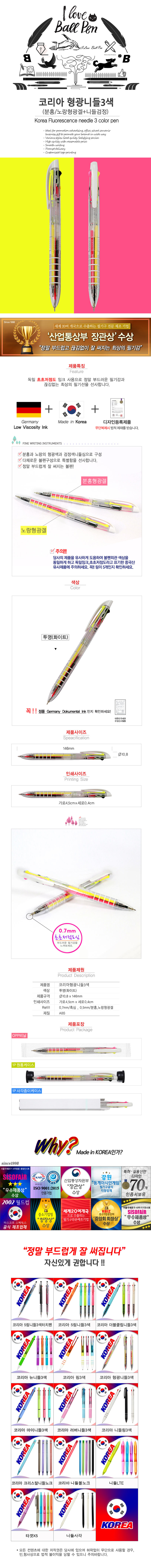 (±¹»ê) ÄÚ¸®¾Æ¸µ3»öº¼Ææ (µ¶ÀÏÀ×Å©-ÃÊÀúÁ¡µµ) 0.7mm 1P