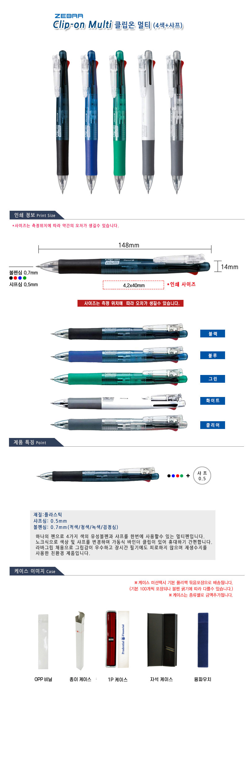 [Á¦ºê¶ó] Ŭ¸³¿Â ¸ÖƼ F 1P (4»öº¼Ææ 0.7mm+»þÇÁ 0.5mm)