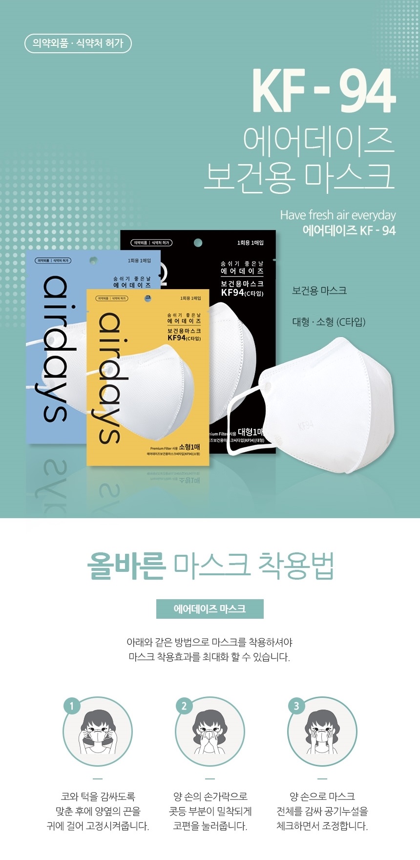 [¿¡¾îµ¥ÀÌÁî] º¸°Ç¿ë ¼û½¬±â ÆíÇÑ KF94 »õºÎ¸®Çü ¸¶½ºÅ© ´ëÇü ÈÀÌÆ® 1P (ÀǾà¿Üǰ)
