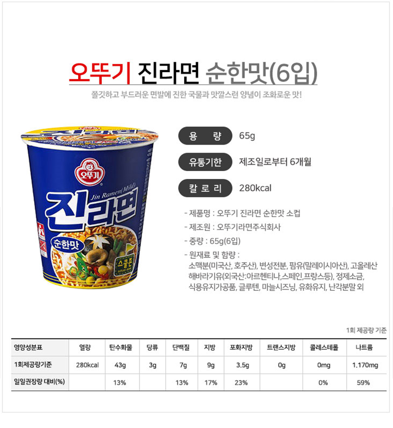 »óǰ¸í [¿À¶Ñ±â] Áø¶ó¸é ¼øÇѸÀ (65g*6°³)