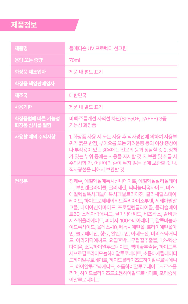 »óǰ¸í [Æú¸Þµð½¼] UV ÇÁ·ÎÅØÅÍ ¼±Å©¸² 70ml SPF50+ PA+++ 1P