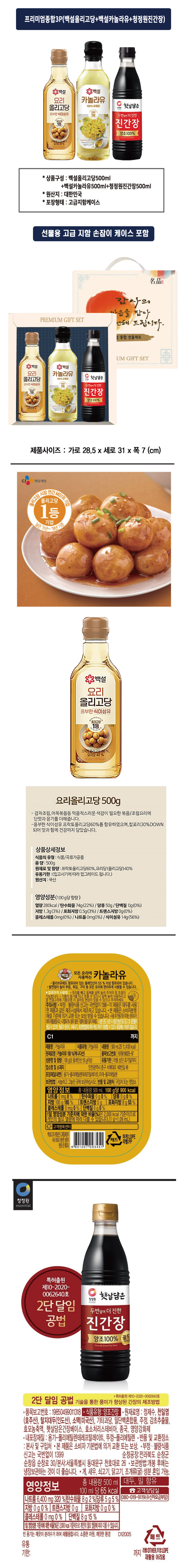 ¹é¼³¿Ã¸®°í´ç500ml + ¹é¼³Ä«³î¶óÀ¯500ml + ûÁ¤¿øÁø°£Àå500ml + Àü¿ëÄÉÀ̽º