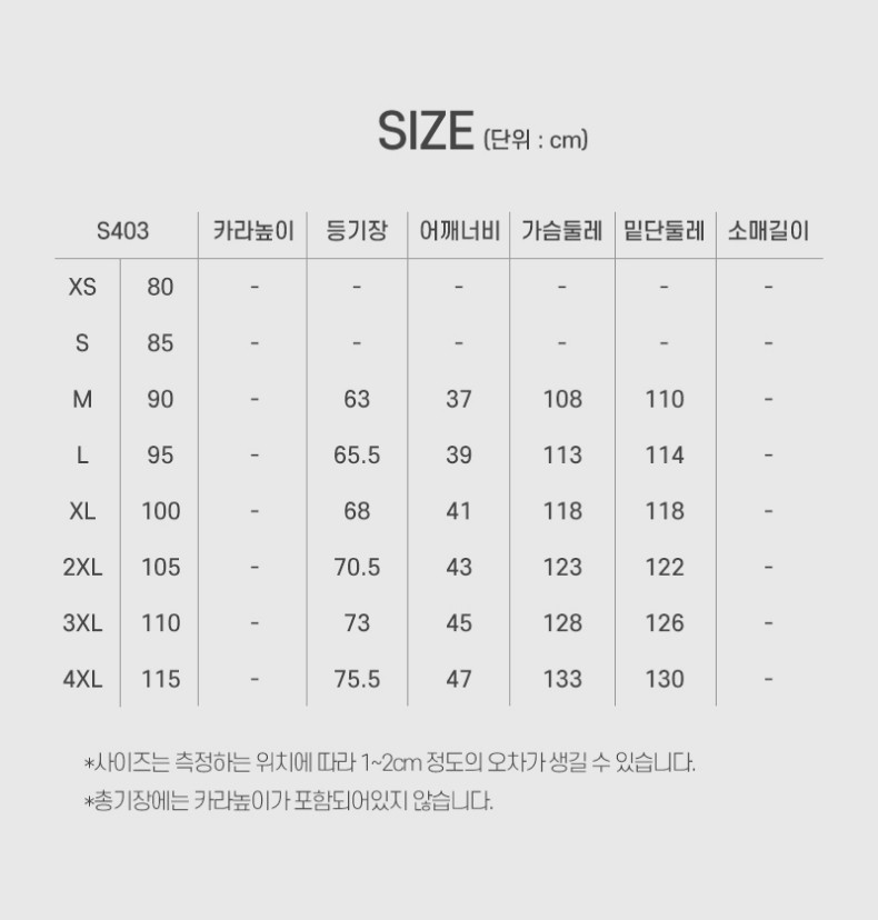M(90),L(95),XL(100),2XL(105),3XL(110),4XL(115)