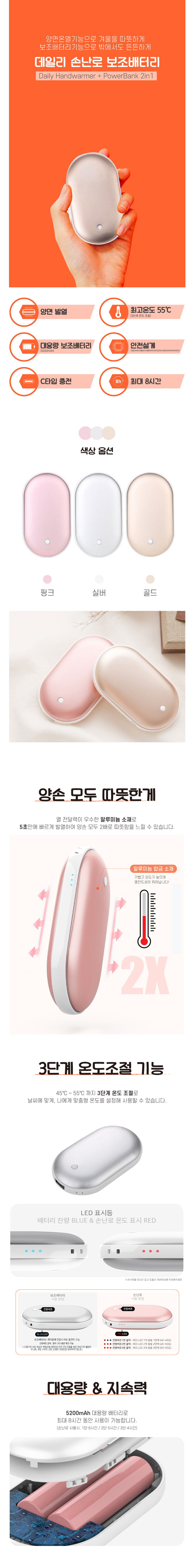 ÃÊÆ¯°¡ [ºê¸®ºñ¿À] LED ¾ç¸é¹ß¿­ Æ÷ÄÏ ¼Õ³­·Î º¸Á¶¹èÅ͸® 5000mAh 1P