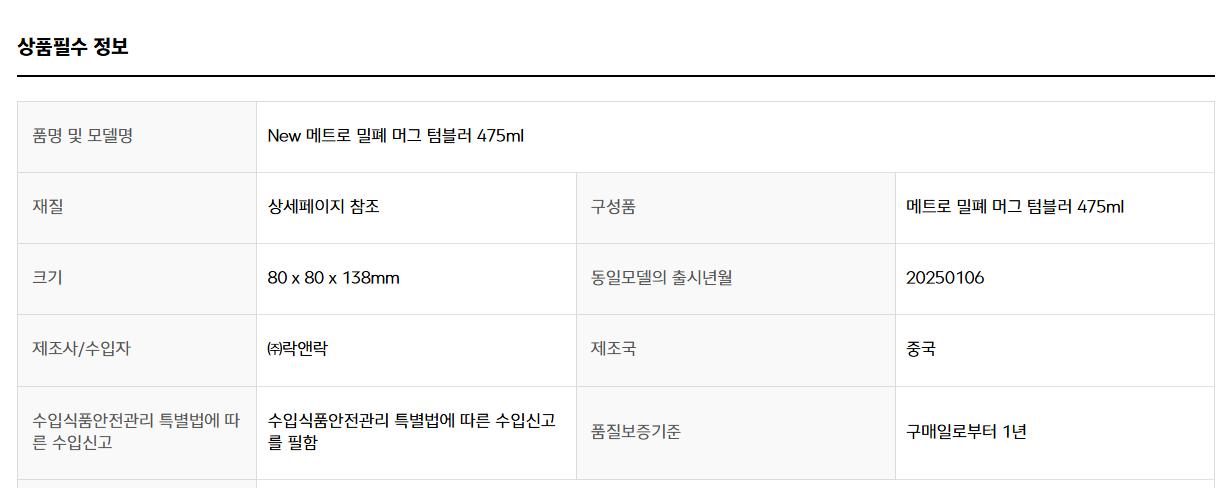 »óǰ¸í [¶ô¾Ø¶ô] NEW ¸ÞÆ®·Î ¹ÐÆó ¸Ó±× ÅÒºí·¯ 475ml 1P