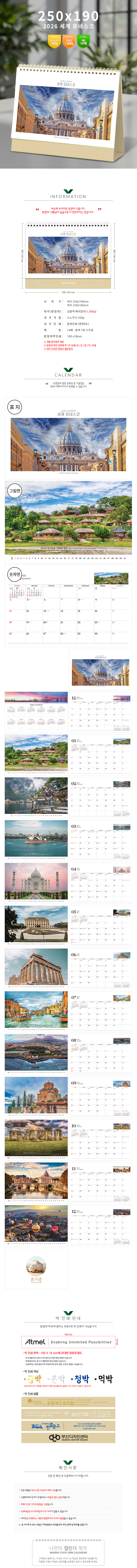 2026³â Ź»ó´Þ·Â ¼¼°èÀ¯³×½ºÄÚ Ä¶¸°´õ Ä«·»´Ù 250*190mm 1P