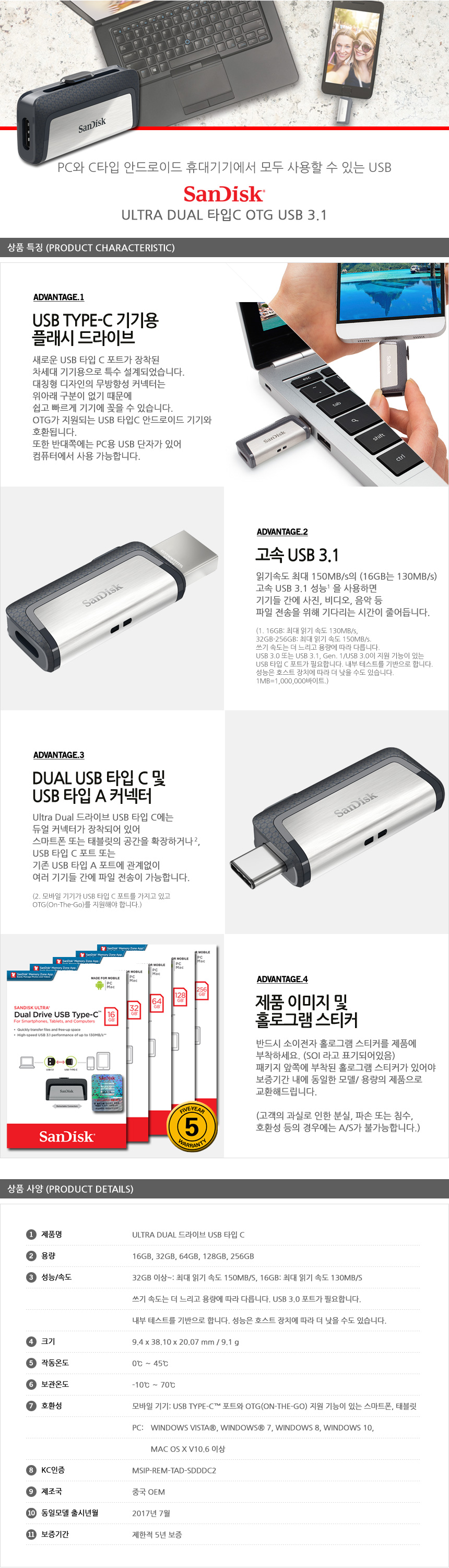 [»÷µð½ºÅ©] SDDDC3 µà¾ó¿ÀƼÁö CŸÀÔ USB¸Þ¸ð¸® (32GB~128GB) 1P