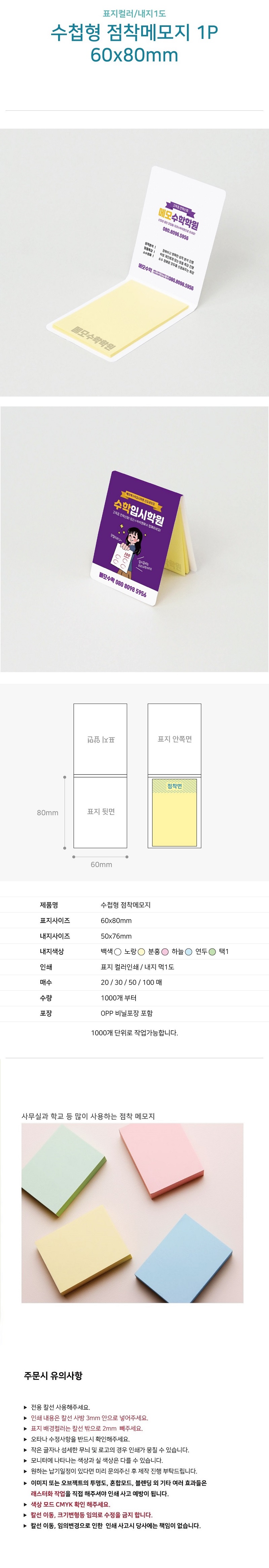 ¼öøÇü Á¡Âø¸Þ¸ðÁö 80*80mm 1P (20¸Å/30¸Å/50¸Å)