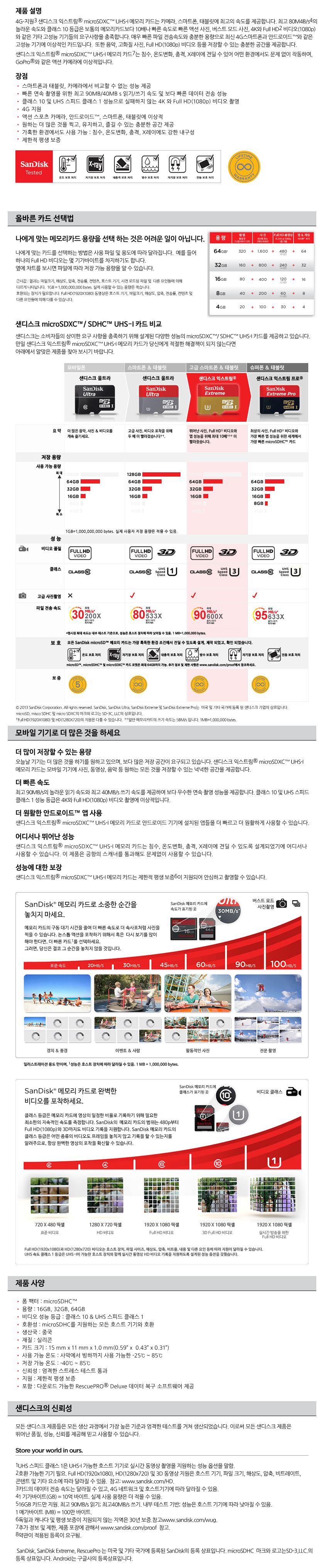 »óǰ¸í [»÷µð½ºÅ©] USB¸Þ¸ð¸® Extreme MicroSD (32GB~400GB) 1P